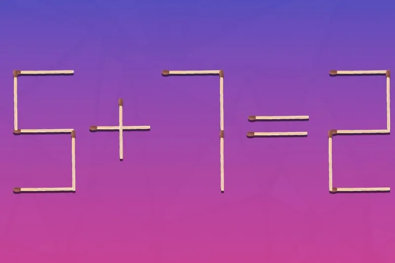 Нова головоломка з сірниками: перевірте свою кмітливість. Вам необхідно виправити помилку в рівнянні 5+7=2, переставивши всього 1 сірник за 15 секунд. Чи зможете ви знайти правильний спосіб розташування сірників?