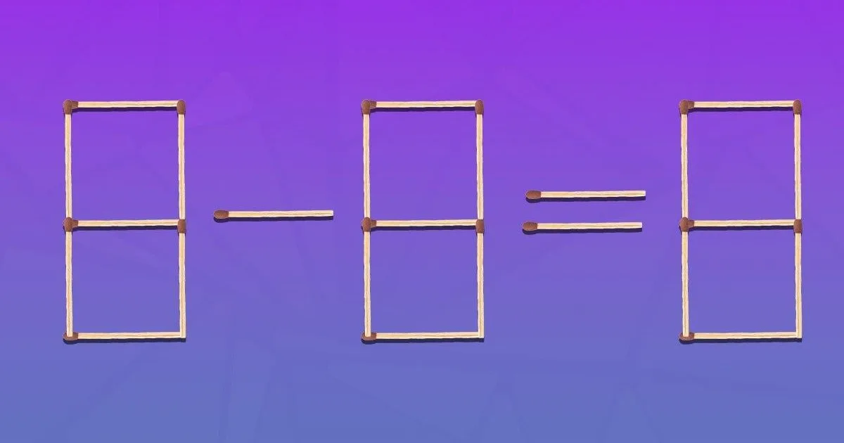 Нижче буде зображення, на якому за допомогою сірників викладено рівняння 8-8=8. З математичної точки зору, воно не є правильним, адже тоді відповідь мала би дорівнювати 0.