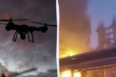 Пожежа на НПЗ у Уфі після атаки дронів. У ніч на 2 квітня нафтопереробний завод став мішенню для атак безпілотників, відбувся вибух і масштабна пожежа. За інформацією голови Башкортостану, кілька дронів було збито на підльоті до заводу.