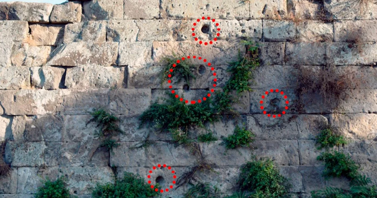 Важливим аргументом на користь цієї гіпотези є також результати інженерних розрахунків. Вчені змоделювали обсяг вибитого з отворів каменю і встановили, що енергія удару відповідає параметрам античних метальних машин.